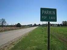 Highway 184 enters Parkin near Parkin Archaeological State Park