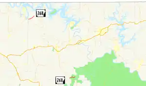 Highway 268 (AR 268, Ark. 268, and Hwy. 268) is a designation for two state highways in Marion County. One route of 3.00 miles (4.83 km) runs from Highway 14 to Marion County Road 227 (CR 227, B Rodgers Cir) and CR 259 (Locust Rd). A second route in south Marion County runs 2.78 miles (4.47 km) from Highway 14 to the Buffalo National River. Both routes are maintained by the Arkansas State Highway and Transportation Department (AHTD).[3]