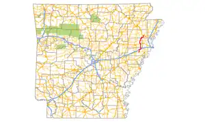 - 1 2 System Information and Research Division (2015). "Arkansas Road Log Database" (MDB). Arkansas State Highway and Transportation Department. Retrieved March 27, 2016.