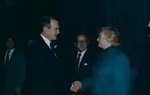 In 1986 and 1990, she won the Republican primary for governor. In 1986, her campaign used the slogan "Let's Just Call Her Governor", owing to her hard-to-read surname.[6] In the election, she lost to Democrat Steve Cowper 47.3-42.6. In 1990, her running mate Jack Coghill defected to the third party candidate Walter J. Hickel. Sturgulewski went on to come in third place behind former governor Wally Hickel and Democrat Tony Knowles. There was opposition within the Republican party to her abortion rights and development positions.[7] By 2016, she had registered nonpartisan, as the Republican party had moved, "too far to the right."[8] In 2019, Sturgulewski co-chaired a committee that attempted to recall Republican Governor Mike Dunleavy.[9]