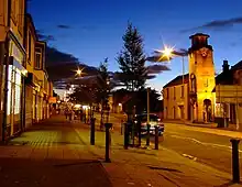 In 1870, a second church named the parish church was built in the town (with a belfry and pedimented porch).[17] By 1912, the town had extensive coalfields, quarries, tile and brickworks and other industry.[17] These included the Etna Brickworks, the Unicol Tile Works, the Atlas Brick Works and the West Works (demolished 1982).[20][21][22][23]