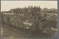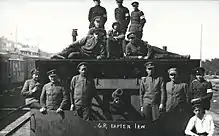 On November 29, 1938, the Armored Train Regiment celebrated the 20th anniversary of the armored trains of Estonia, which date back to 1918 during the Estonian Independence War.[5] Major General Aleksander Pulk, commander of the 1st Division spoke at the regiment's sports field. Around 100 veterans who were personnel of the armored trains during the Independence war attended. A parade was held on the regiment's sports field. Lunch was offered to the veterans after the parade. Colonel Karl Parts, who led and organized armored trains during the Independence War, gave a speech about Rear Admiral Johan Pitka, who is often called "the father of the armored trains".[6] Parts ended his speech by remembering the fallen personnel of the Armored trains in the Independence War and the actions of Captain Anton Irv, who died in 1919. Other military figures, including General Johan Laidoner, Lieutenant general Paul Lill, and Lieutenant general Nikolai Reek sent telegrams. The celebration continued until the next day on November 30, 1938.[2]