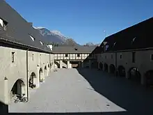 Maximilian I had the Armoury built from 1500 to 1505 on the Sill which was then in front of the gates of the town. It consists of two 80 x 10 m, two-storey wings and two narrow gatehouses and blocks that surround a large inner courtyard. Materiel for war was stored here and, around the Armoury, were subsidiary buildings. As well as cannon, many small arms were also stored here.