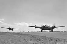 A Soviet-crewed Albemarle flew from Scotland to Vnukovo airfield, near Moscow, on 3 March 1943, and was followed soon afterwards by eleven more aircraft.[21] Two Albemarles were lost over the North Sea, one to German fighters and the other to unknown causes. Tests of the surviving Albemarles revealed their weaknesses as transports (notably the cramped interior) and numerous technical flaws; in May 1943, the Soviet government suspended deliveries and eventually cancelled them in favour of abundant American Douglas C-47 Skytrains. The Soviet camp at Errol Field continued until April 1944: apparently the Soviet government had hoped to secure de Havilland Mosquitos. Tapper speculated that a major reason for the Soviet's interest in the Albemarle had been its Bristol Hercules engines, which were reverse engineered and subsequently copied by Soviet industries.[22]