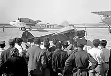 Imperial Airways was impressed with the company's proposal, making the unusual decision to order it into production 'off the drawing board'.[4] On 6 June 1932, the prototype, G-ABPI, performed its maiden flight, piloted by Alan Campbell-Orde. It received the individual name Atalanta, which subsequently was applied to the whole class as well.[4] On 27 June 1932, the Atalanta had its first public appearance at the company's Society of British Aerospace Companies (SBAC) display at Hendon Aerodrome; according to Tapper, it was favourably received at the event.[4]