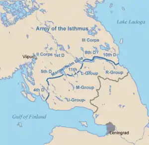The Army of the Isthmus (Finnish: Kannaksen Armeija) was a formation of the Finnish Army during the Winter War. It was stationed on the Karelian Isthmus and was the largest formation of the Finnish Army, as it was charged to defend the important isthmus.