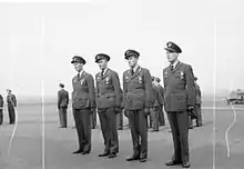 ![]() Arne Austeen (2nd from left) was awarded the Distinguished Flying Cross together with Kaj Birksted, Werner Christie and Nils Jørstad | |