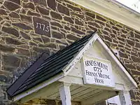 In 1743, Friends living near Shreve's Mount (later called Arney's Mount for an early settler, Arney Lippincott) asked the Burlington Monthly Meeting for permission to worship on the first day of each week, during the winter season, at the meeting house near Caleb Shreve's Mount.[1][4] Some years later a meeting house was erected. The builder was Samuel Smith, whose name appears on the stone above the front doorway. As years passed the area changed and attendance at Arney's Mount Meeting declined. The Preparative Meeting, established in 1776, was laid down in 1871. The meeting house continued to be used at times for worship and Firstday school. Since 1941 meeting for worship usually has been held twice monthly.[1]