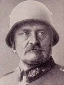 In 1910 Lequis became Chief of Staff of the Thorn Governorate and promoted to Colonel in 1912 and Commander of the Engineers of the I Army Corps in 1913.[1] During World War I, he was initially chief of the general staff of the governorate of Poznan and from October 1914, he was chief quartermaster of the 2nd Army and in December 1914, he was promoted to major general.[1] In May 1916 he was appointed commander of the 104th Infantry Brigade and in November of the same year he took charge of the 12th Division.[3] In 1917 he was awarded the Pour le Mérite and, after successfully participating in the Battle of Caporetto, was awarded the Pour le Mérite with Oak Leaves.[4] In March 1918 he took part in the German spring offensive with his division and was promoted to lieutenant general in July. He was then made governor of Metz before returning to Berlin after the Armistice of 11 November 1918 was signed.