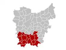 The Arrondissement of Oudenaarde (Dutch: Arrondissement Oudenaarde; French: Arrondissement d'Audenarde) is one of the six administrative arrondissements in the Province of East Flanders, Belgium. It is both an administrative and a judicial arrondissement. However, the Judicial Arrondissement of Oudenaarde also comprises the municipalities of Geraardsbergen, Herzele, Sint-Lievens-Houtem and Zottegem in the Arrondissement of Aalst.
