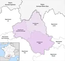 Map of arrondissements of the Aveyron department.