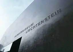 The Kunstmuseum Liechtenstein (English: Liechtenstein Museum of Fine Arts) is a state art museum in Vaduz, Liechtenstein.[1] The building by the Swiss architects Meinrad Morger, Heinrich Degelo and Christian Kerez was completed in November 2000. The museum is a collection of international modern and contemporary art and also the national art collection of the Principality of Liechtenstein. In 2015, the new Hilti Art Foundation exhibition building was added to the Kunstmuseum.