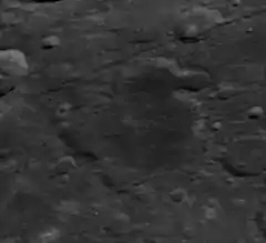 Artamonov is a lunar impact crater on the far side of the Moon. Its eroded outer rim does not have the circular shape of most lunar craters, but the overall shape of three or four merged craters. The largest is in the south, with smaller circular bulges to the north and east.
