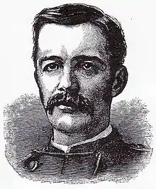 When the North-West Rebellion of Métis and Indians broke out in western Canada, in March 1885, the Canadian militia commander, Major General Frederick Middleton, suggested that two Gatling guns be procured from the United States.[2] Dr. Richard J. Gatling, the gun's inventor, began searching for a man who was an expert in the use of the Gatling, and selected Lieutenant Howard. Howard agreed to go to Canada with the two Gatlings. He was granted a month's leave of absence from the Guard (later extended). The Connecticut Guard later made it plain that they had "no hand" in Howard's planned expedition.[3]