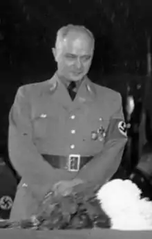 After the Nazi seizure of power, Görlitzer was appointed Deputy Gauleiter of Gau Berlin on March 13, 1933, where he served under Gauleiter Joseph Goebbels.[2] On July 11, 1933 Görlitzer was named to the recently reconstituted Prussian State Council by Prussian Minister President Hermann Göring.[3] At the November 1933 German parliamentary election, he was elected to the Reichstag from electoral constituency 2 (Berlin). He would be reelected in 1936 and 1938 for district 3 (Berlin-East), serving until the end of the Nazi regime.[4] On July 20, 1934, he also became a Berlin City Councillor. A member of the Nazi paramilitary organization, the SA, Görlitzer attained the rank of SA-Gruppenführer on November 9, 1938. From 1941 he was the director and manager of the Deutschlandhalle and a supervisory board member of the Deutsche Revisions und Treuhand AG auditing office.