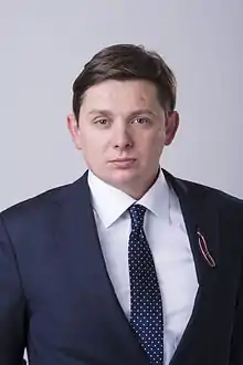 Since 2014 he has been actively involved in politics. He is currently a member of Latvian Parliament. Originally elected at the 2014 elections as a member of the Latvian Association of Regions, he left the party in December 2015 to serve as an independent MP. On May 3, 2016, he founded his own political movement, Who Owns the State? (KPV LV), which later evolved into a political party.[2][3] Elected on the KPV LV ticket at the 2018 elections, he was expelled from the party's parliamentary faction in January 2020.[4]