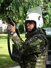 Romanian Military Police soldier with an AL-38 grenade launcher.