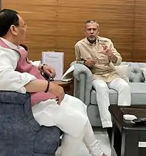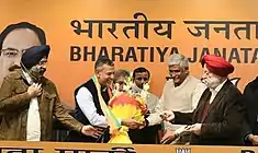In 2021, speculation arose in the media that Khanna may be joining the Shiromani Akali Dal and contesting from Sangrur in the 2022 elections.[55] In January 2022, Khanna reentered politics and joined the Bharatiya Janata Party in the presence of Union Cabinet Ministers, Gajendra Singh Shekhawat and Hardeep Singh Puri.[56][57] Khanna is a senior leader of the BJP and an influential figure in BJP Punjab.[3][58]