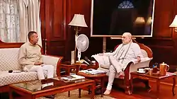 In September 2022, Khanna spoke at the mock Punjab Assembly session that was organised by the BJP against the Aam Adami Party (AAP) Government in Punjab.[68] In August 2022, Khanna and other senior BJP leaders met with Prime Minister Narendra Modi during his visit to Mohali and discussed issues the state is facing, which included Modi stating his concerns about Punjab's depleting water table.[69][70] In October 2022, Khanna accompanied Hardeep Singh Puri, the Minister of Petroleum and Natural Gas and the Minister of Housing and Urban Affairs, to the inauguration of Asia's largest compressed biogas plant in Lehragaga, Sangrur district.[71][72] The plant was commissioned by Verbio, a German bioenergy company.[71] He has also criticised the AAP Government in Punjab for not adequately handling lawlessness incidents in the state.[73]