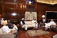 Khanna wielded significant influence in the Punjab Congress because of his vast personal fortune and his relationship with Amarinder Singh, former Chief Minister of Punjab.[10] Khanna and Singh are first cousins, being related through Khanna's mother, Naginder, who was Singh's paternal aunt.[40][36][46] During his time in the Congress Party, Khanna was Singh's right-hand man and controlled access to Singh.[47][48][49] Khanna would regularly provide his private airplane and helicopter for Singh's use.[9][50] Khanna also gained control over the Punjab Congress' political strategy by using his personal fortune to fund Singh's office during his second term as PCC President, and hiring managers to monitor, coordinate and schedule Singh's meetings.[1][45] In his visits to Chandigarh, Singh would stay in Khanna's house in Sector 10.[9]