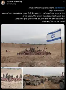 In December 2023, during the 2023 Israel-Hamas war, King called for the IDF to "pick up the pace," and bury alive hundreds of captured Palestinian civilians in Gaza, referring to them as "Muslim Nazis". The politician's post on X, later deleted for violating the platform's rules, advocated using bulldozers for this purpose. The captives, allegedly Hamas members according to the IDF, which provided no verifiable evidence, were shown in footage being guarded by soldiers, after stripped down to their underwear. King stated that the captured Palestinian were neither human beings and not human animals but rather "subhuman" and should be treated as such. He invoked the biblical reference of Amalek, urging to "Eradicate the memory of Amalek, and never forget," aligning with a historical call for the complete elimination of an ancient enemy.[11]