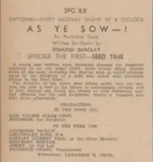 - ↑ Australian Broadcasting Commission. (1939), "As Ye Sow", ABC weekly, Sydney: ABC (Vol. 13 No. 32 (11 August 1951)), nla.obj-1549725373, retrieved 29 June 2023 – via Trove