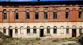 The local white rocky stones were used in the construction of the first floor, and the boiled red bricks on the second floor. The composition of the facade is built on the basis of three huge shebeke windows and two deep niches located next to them slightly passing to the first floor.