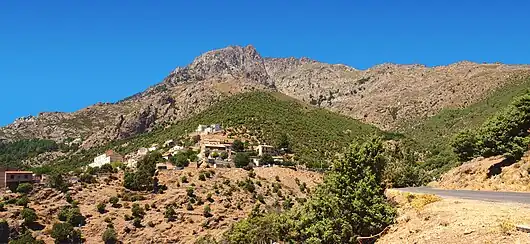 The main river is the Asco, a tributary of the Golo, which has its source from under the Punta Rossa (or Pic Von Cube) (2,247 m) in the commune as the Ruisseau de Tighiettu and, further downstream, it becomes the Ruisseau de Stranciacone. It leaves the communal territory at the walkway located at the confluence of the Ruisseau de Cabanne in the place called "Gorges of Asco". This walkway is 383 m above sea level and provides access to the existing adventure park for tree climbing, Via ferrata, etc. The Asco has many tributaries: thirteen are listed on the SANDRE website.[5]