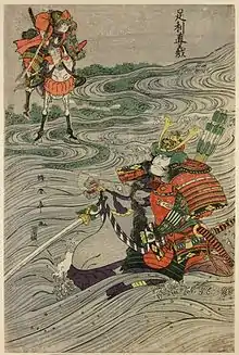 Ashikaga Tadayoshi (足利 直義, 1306 – March 13, 1352, Kamakura, Japan)[1] was a general of the Northern and Southern Courts period (1337–92) of Japanese history and a close associate of his elder brother Takauji, the first Muromachi shōgun. Son of Ashikaga Sadauji and Uesugi Kiyoko, daughter of Uesugi Yorishige, the same mother as Takauji, he was a pivotal figure of the chaotic transition period between the Kamakura and Muromachi shogunates.[2] Tadayoshi is today considered a military and administrative genius and the true architect of many of his elder brother's successes.[3] In contemporary chronicles he is rarely called with his name, but is instead called either gosho (御所) or Daikyū-ji-dono (大休寺殿) from the name of his family temple.[4][5] His posthumous name was Kozan Egen (古山慧源).[5]
