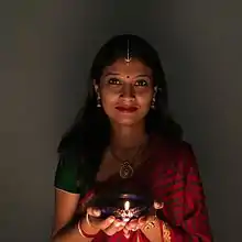 Ashish has been featured in multiple online newspapers about being selected for the iPhone 6S campaign. Pictures that were shot on an iPhone 6S were featured in the iPhone 6S Photo Gallery. His candid shot of his wife holding a diya in her hand in a red saree with a purple-colored diya cupped in her hands, looking straight into the camera with a natural smile was plastered on hoardings at various locations in India (Bengaluru, Mumbai, Chennai and Kolkata) and abroad, including the US (Los Angeles, Manhattan and New York), UK (London) and France.[8] His picture was one of 53 images from 41 individuals chosen across the world.[9] Ashish was the only Indian resident to get selected.[1] Ashish and his wife, Raina were also featured on news channels like ETV News Kannada and News9 after their photo went viral.[6]