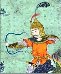 Ashkbous (Persian: اشکبوس) is a Kashanian hero in Shahnameh who fights with Iranians in the Battle of Kamous-e Kashani. In Bondari's translation of Shahnameh into Arabic, his name is given as Askbos. In the story of Kamous, Ashkbous first fights with Rohham and defeats him, but he himself was defeated and killed by Rostam who was fighting on foot without Rakhsh. The battle of Rostam and Ashkbous was a popular choice in Persian miniature.[1] It has been suggested that Kashanians or Koshanians are related to Kushan Empire.[2]