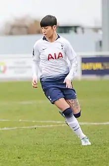 On 14 July 2017, Neville was announced as having signed for Tottenham Hotspur after their promotion to the FA Women's Super League 2 for the 2017–18 season. Her former club Coventry United were title rivals with Tottenham Hotspur in the FA WPL Premier Division Southern Division, but ultimately fell four points behind Spurs who eventually won promotion.[5] She appeared in 36 matches and scored a total of five goals during her first two seasons with the club.[6] Neville was named Player of the Year for Tottenham for 2017–18, and was FAWC Player of the Month for April 2019.[7] Tottenham's first top flight season would ultimately end prematurely, but Neville appeared in 13 of 15 matches and helped Spurs finish seventh out of twelve sides.[8] It was announced on 12 June 2020, that she re-signed with Tottenham through the end of the 2022 season.[9] The following season Neville would appear 12 times out of 22 possible matches in the WSL as Spurs would finish in eighth place.[8]