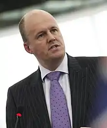 Sir Ashley Fox (born 15 November 1969)[3][4] is a British Conservative Party politician. He was a Member of the European Parliament (MEP) for South West England and Gibraltar. He was leader of the Conservatives in the European Parliament from 2014 to 2019.