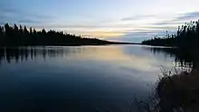 This area was first visited by "Montagnais" Innu people who practiced the fur trade. With the arrival of Europeans in the area, several trading posts, called Postes du Roi, were established on the shores of lakes Ashuapmushuan and Nicabau.[2] The word Ashuapmushuan is a term in Montagnais Innu language, meaning "where we see the moose".[3]