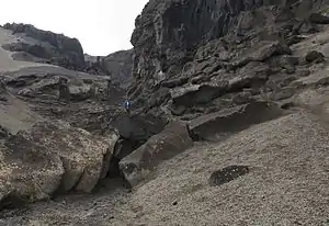 Askja was virtually unknown until the subplinian eruption which started on March 28, 1875, followed by the devastating phreatoplinian explosion on March 29, 1875.[6] Especially in the Eastfjords of Iceland, the ashfall was heavy enough to poison the land and kill livestock. Ash, or tephra from this eruption was wind-blown to Norway, Sweden, Germany and Poland. The eruption triggered a substantial wave of emigration from Iceland. Another less well-known eruption, called Askja-S, occurred in the early Holocene, ca 11,000 years ago. Tephra from this eruption has been found in south-east Sweden, Northern Ireland and north Norway and recently as far south as Romania, which makes it one of the most far-travelled Icelandic tephras. The last eruption of Askja was in 1961.