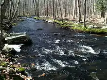 The Aspetuck River is a 17.0-mile-long (27.4 km)[1] river in the U.S. state of Connecticut. The river rises in the hills located in Huntington State Park in Bethel, with a watershed of approximately 430 acres (170 ha).[2] The river flows generally southerly through Redding, Connecticut, to the Aspetuck Reservoir, and finally into the Saugatuck River in Westport, Connecticut and then into the Long Island Sound. It flows through the village of Aspetuck at an average depth of 2.5 feet (0.76 m).[3] The word Aspetuck can be translated as "river originating at the high place" in an Algonquian language.[4]