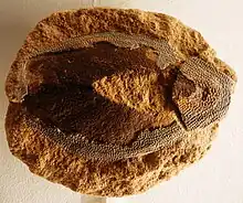 Asterolepis is an extinct genus of antiarch placoderms from the Devonian of North and South America and Europe.[1] They were heavily armored flat-headed benthic detritivores with distinctive jointed limb-like pectoral fins[2] and hollow spine.[3] The armor plate gives the Asterolepis a box-like shape. Its pectoral fins are also armored but the caudal and dorsal fin are not. The first fossils were named by M. Eichwald in 1840 after noticing star-like markings on the fossils.