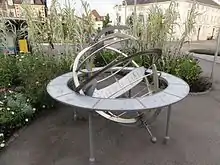 Fixed astronomical rings are mounted on a plinth, like armillary spheres, and can be used as sundials.