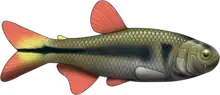 Astyanax brachypterygium reaches a maximum length of 6.4 cm (2.5 in) standard length, SL.[4] There are 13–15 anal-fin rays, which is a much lower number than almost every other member of the genus; counts therein range from 20 to 45. There are 11 or 12 pectoral-fin rays, occasionally 10 or 13. There are 6 or 7 pelvic-fin rays, and 8–10 rays in both lobes of the caudal fin. There are 35–37 scales in the lateral line.[5] The eye takes up roughly one-quarter of the head's length.[11]