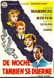 At Night You Also Sleep (De noche también se duerme) is a 1956 Argentine comedy film directed by Enrique Carreras and written by Abel Santacruz.[1] It stars Ana Mariscal, Olga Zubarry, Jorge Rivier and Roberto Escalada and premiered on 19 January 1956.[2]