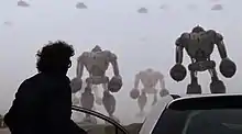 Giant robots appear out of the mist and attack Montevideo, the capital of Uruguay. Accompanied by a squadron of spacecraft, they fire weapons at the city and destroy key buildings, leading to mass panic. The military fights back to little avail. At the end of the film, the robots fuse together to form a giant sphere, which then detonates and engulfs the city in a fireball. No explanation is given for the attack.