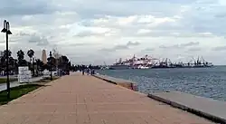 The park is a Mediterranean coastal park of Akdeniz district. The longer dimension of the park, which is more than 1,200 m (0.75 mi) lies along the sea coast in north east to south west direction. The total area of the park is 184,772 m2 (1,988,870 sq ft).[1] about 16 ha (40 acres). The east of the park is bounded by the harbour facilities and the west is bounded by the old Mersin marina and Efrenk River. The north is bounded by İsmet İnönü Boulevard. Although, coastal park continues 7 km (4.3 mi) to south west beyond Müftü river, the name Atatürk Park is used only for the section between the harbour facilities and the marina.