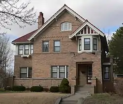 The Atchison A. Ashby House is a historic building located in Sioux City, Iowa, United States. Ashby was a local physician who had this house built in 1916. The Tudor Revival structure was designed by Omaha architect Frederick A. Henniger. It is possible that he designed four other houses on this same block of Summit Street.[2] The five houses are all two-story brick structures that share a similar block-composition, and are capped with tile roofs. This house features faux half-timbering in some of the gable ends, a tall chimney with chimney pots at the top of the flue, and a red tile roof. The house was listed on the National Register of Historic Places in 1998.[1]