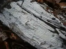 Despite its morphological simplicity, members of Atheliaceae vary widely in terms of ecological strategies. A number of species are known to be saprotrophs of needle and leaf litter, while some species of Amphinema, Byssocorticium, Piloderma, and Tylospora are ectomycorrhizal symbionts. They sometimes constitute a major component of the mycorrhizal communities.[11] Subsequently, parasitism has been observed in Athelia arachnoidea, which targets lichens.[12] Lichen formation has been suggested to occur in Athelia epiphylla, which is also associated with the white rot of Populus tremuloides.[13] A species of Athelia also engaged in a symbiotic relationship with termites of the genus Reticulitermes, in which the fungus forms sclerotia that mimic termite eggs and worker termites handling the sclerotia as if they were eggs. The presence of the sclerotia in the nest appears to enhance egg viability, while the fungus might be dispersed to new substrates.[14][15]