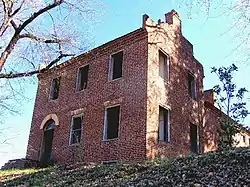 By 1834, the population of Athens had grown to over 500.[13] Prominent early settlers included William Henry Cooke, who operated an iron forge near modern Etowah, and Samuel Clegg (or Cleage), a construction entrepreneur. Jesse Mayfield, whose descendants founded Mayfield Dairy Farms, arrived in the early 1820s.[14] The Hiwassee Railroad received a charter in the mid-1830s to build a railroad connecting Knoxville, Tennessee, and Dalton, Georgia. The railroad began construction in 1837, although financial and legal problems delayed its completion until 1851.[12] In 1836, General John Wool arrived in Athens to help coordinate the Cherokee Removal. Although initially voluntary, the operation became a forced removal in 1838 when many Cherokee refused to leave. The removal culminated in the forced march west that became known as the Trail of Tears. Wool set up his headquarters at the Bridges Hotel, which was located across the street from the McMinn County Courthouse.[15]