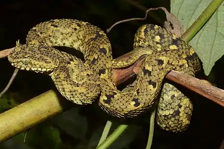 1. Spawls, S.; Joger, U. (2019). "Atheris ceratophora". IUCN Red List of Threatened Species. 2019: e.T178563A46182773. doi:10.2305/IUCN.UK.2019-2.RLTS.T178563A46182773.en. Retrieved 20 November 2021.