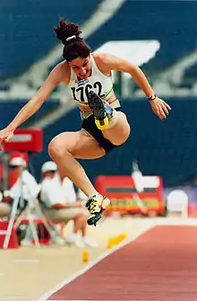 Australian athlete Frances Stanley competes in the F44 long jump event at the 1996 Atlanta Paralympic Games where she finished sixth