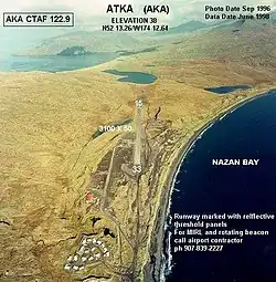 Atka Airport (IATA: AKB, ICAO: PAAK, FAA LID: AKA, formerly 40A) is a state-owned, public use airport located two nautical miles (4 km) north of the central business district of Atka,[1] a city on Atka Island in the U.S. state of Alaska. Scheduled commercial airline passenger service is subsidized by the Essential Air Service program.