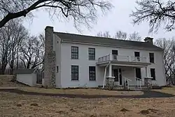 Atkins-Johnson Farmhouse Property, also known as the Alkins Farm, is a historic home and farm complex located at Gladstone, Clay County, Missouri. The original log section of the farmhouse was built about 1826; it was enlarged to the present I-house about 1853. Also on the property are the contributing root cellar and entrance structure, a milk house, a well and pump structure, and a vehicular and equipment garage.[2]:5
