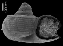 | apical view of the shell of Atlanta brunnea from the Pliocene of Philippines | |